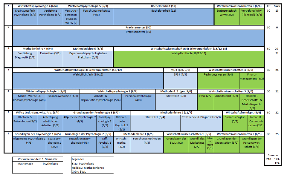 Voraussetzung für eine effektive und effiziente wirtschaftspsychologische Tätigkeit in diesen Bereichen, d.h. eine psychologische Tätigkeit an den Nahtstellen zwischen ökonomischem Handeln und dem Erleben und Verhalten der beteiligten Personen, sind fundierte Kenntnisse psychischer Prozesse und psychologischer Methoden auf der einen und das Verständnis ökonomischer Ziele, Prozesse und Handlungen auf der anderen Seite. Dementsprechend ist es das Ziel des Bachelor-Studiengangs, den Studierenden auf der Basis einer fundierten psychologischen Grundlagen- und Methodenausbildung auf der einen Seite und durch Vermittlung solider Kenntnisse und des Verständnisses für ökonomische Ziele, Prozesse und Handlungen auf der anderen Seite die anwendungsbezogenen Kenntnisse, Fertigkeiten und Methoden ihres Studienfachs für einen ersten berufsqualifizierenden Abschluss zu vermitteln. Gleichzeitig soll das Studium den Zugang zu ethischen Zusammenhängen schaffen und die internationale Mobilität der Studierenden fördern.